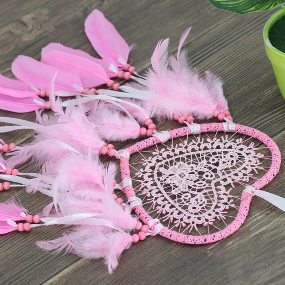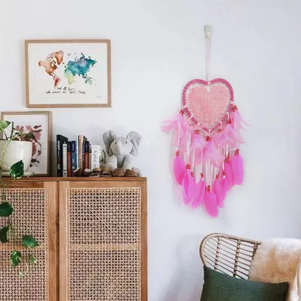 Ловец снов сердце бисер с перьями Настенный декор для девушки комнаты украшение