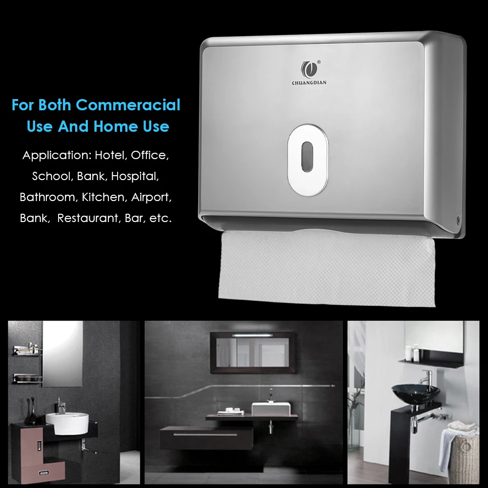 Диспенсер для туалетной бумаги сделан из нового и хорошего качества АБС, который имеет небольшой вес, но прочный, компактный и гладкий вид. Она оснащена необходимыми аксессуарами и очень просты в установке. Он вмещает до 200 шт. бумажного полотенца и хорошо работает, сохраняя поверхность вашего магазина в беспорядке. Идеально подходит для отеля, торговый центр, офисное здание, ванная комната, туалет, школа, детский сад, банки и другие социальные места.