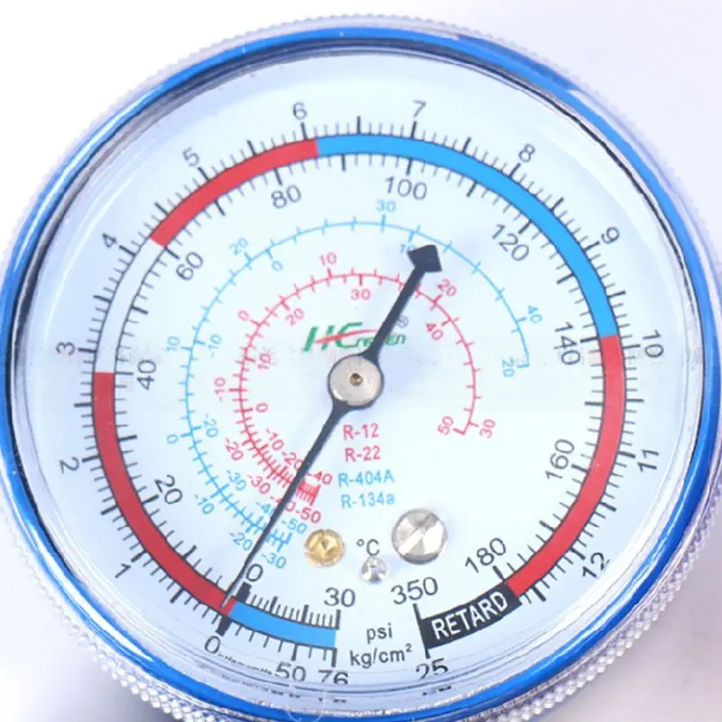 Неплавкий манометр, подходит для R134A, R22, R410A и R502. Высококачественные датчики с простотой рукоятки захвата.