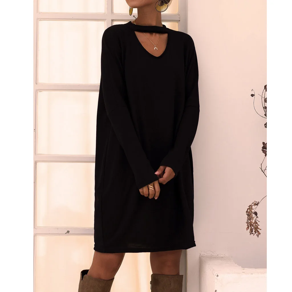 Женское трикотажное платье с длинным рукавом, платье-джемпер с круглым вырезом, мини-платье