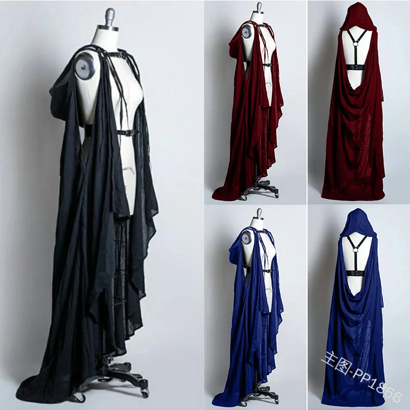 Лес Фея ведьма Готический пол с капюшоном плащ средневековый винтажный костюм для взрослых Хэллоуин вечерние Макси платье плащ без спинки пальто
