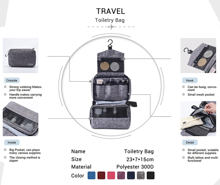 -3 сумка с подвесным крючком, которая может держать все туалетные принадлежности в вертикальном положении, обеспечивая легкий доступ при подвешивании на задней части любого стула, кровати, занавески, душа