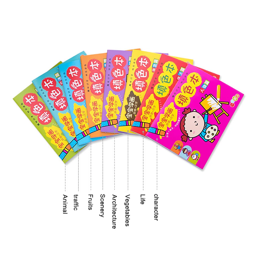 8 шт детские животные Рисование фруктов Рисование бумажные книги цветная наполнение обучающая игрушка