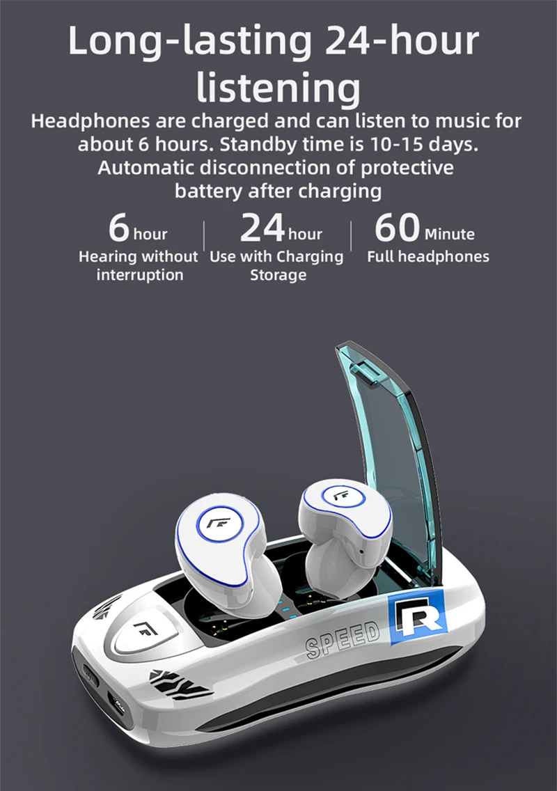 Новые преимущества T918:* Эффект объемного звучания 9D* Автоматическое Сопряжение, быстрое подключение* Двусторонние звонки HD* Bluetooth 5,0 стабильная задержка отклонения передачи* Качество звука HIFI* Класс IPX5 Водонепроницаемость и защита от пота* Светодиодный индикатор батареи с черной технологией* Длительная выносливость, время воспроизведения около 4-6 часов, время работы в режиме ожидания около 10-15 часов* Поддержка Siri (Apple voice assistant) и Google Assistent (Google voice assistant)