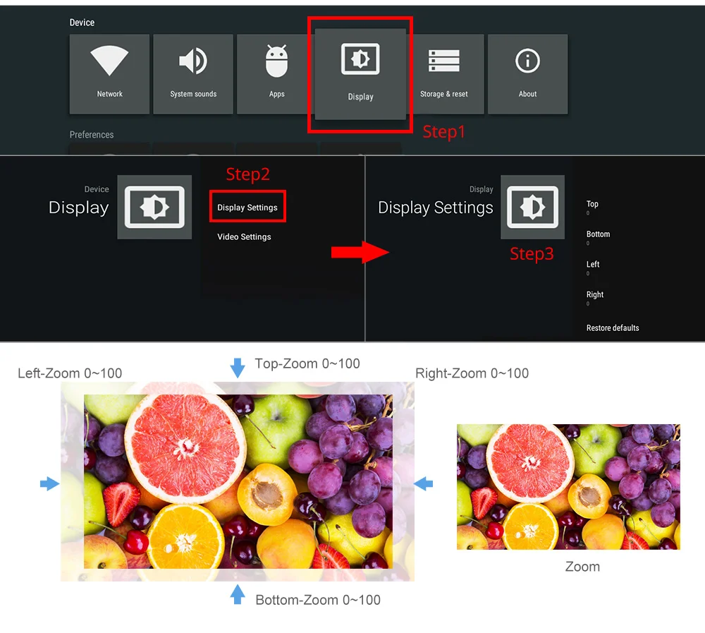 Поддержка 0 ~ 100 функция масштабирования дисплея