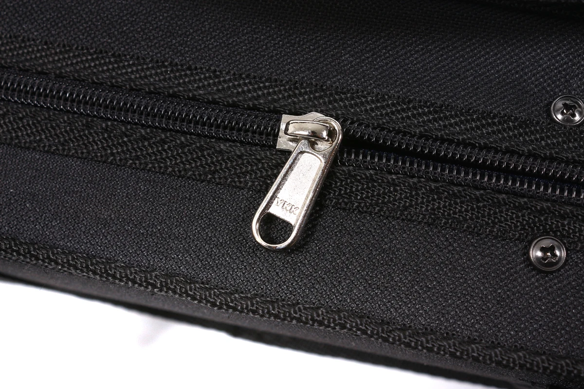 Легкая амортизирующая деревянная рама с прочной нейлоновой внешней поверхностью 600D Вмещает французские или немецкие банты и имеет мягкую неабразивную бархатную подкладку Регулируемый плечевой ремень и бирка с двойной ручкой Долговечные прочные молнии YKK
