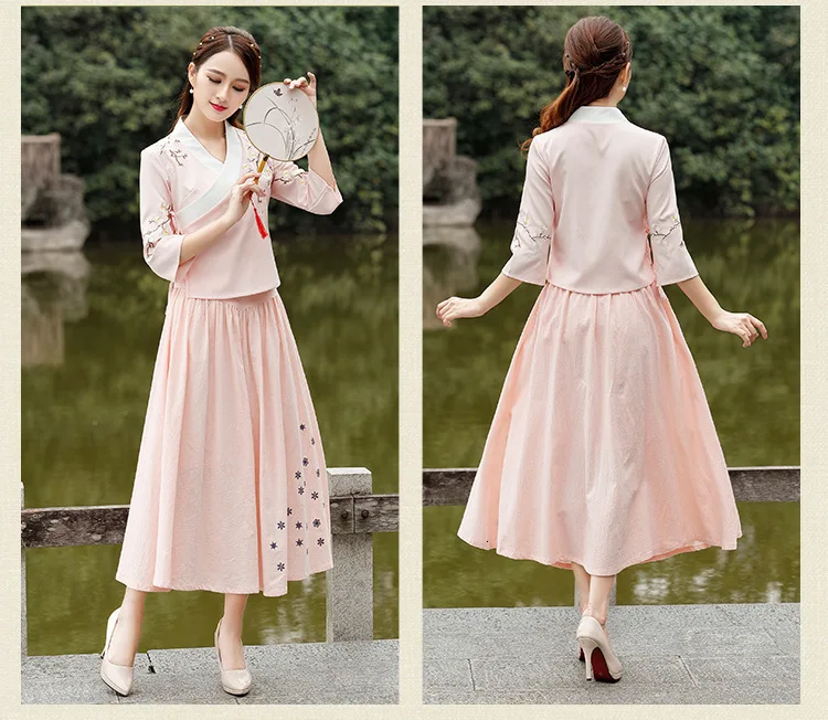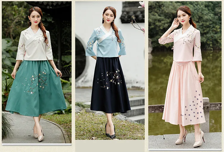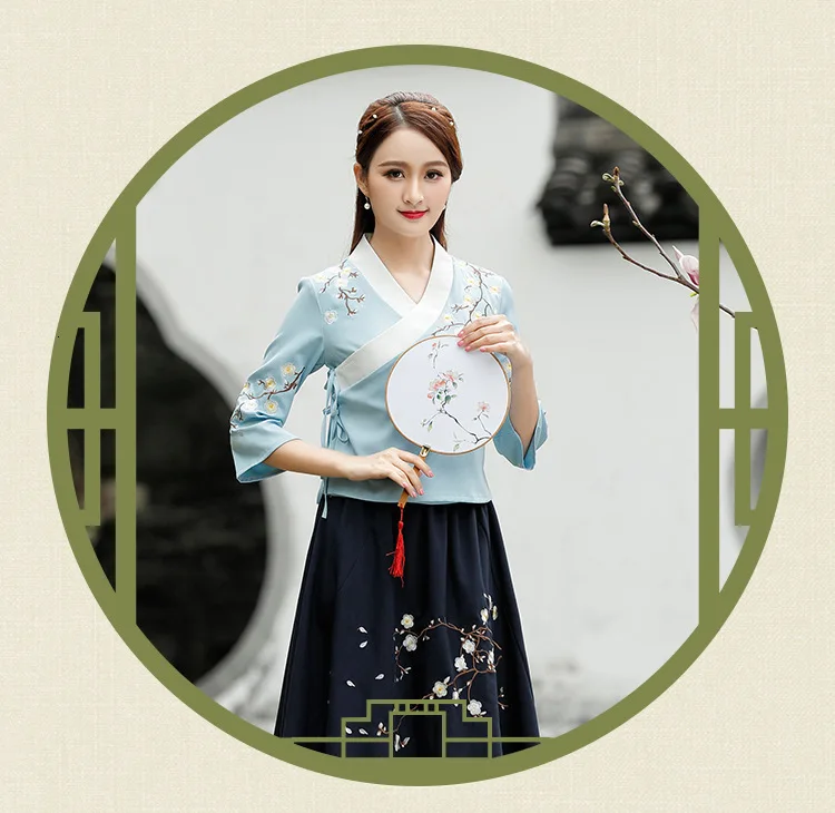 Hanfu Xia Pao рубашка, антикварная, модная, вышивка, литература, восстановление чайной церемонии, одежда в китайском стиле, Qipao, народные женские топы синего цвета