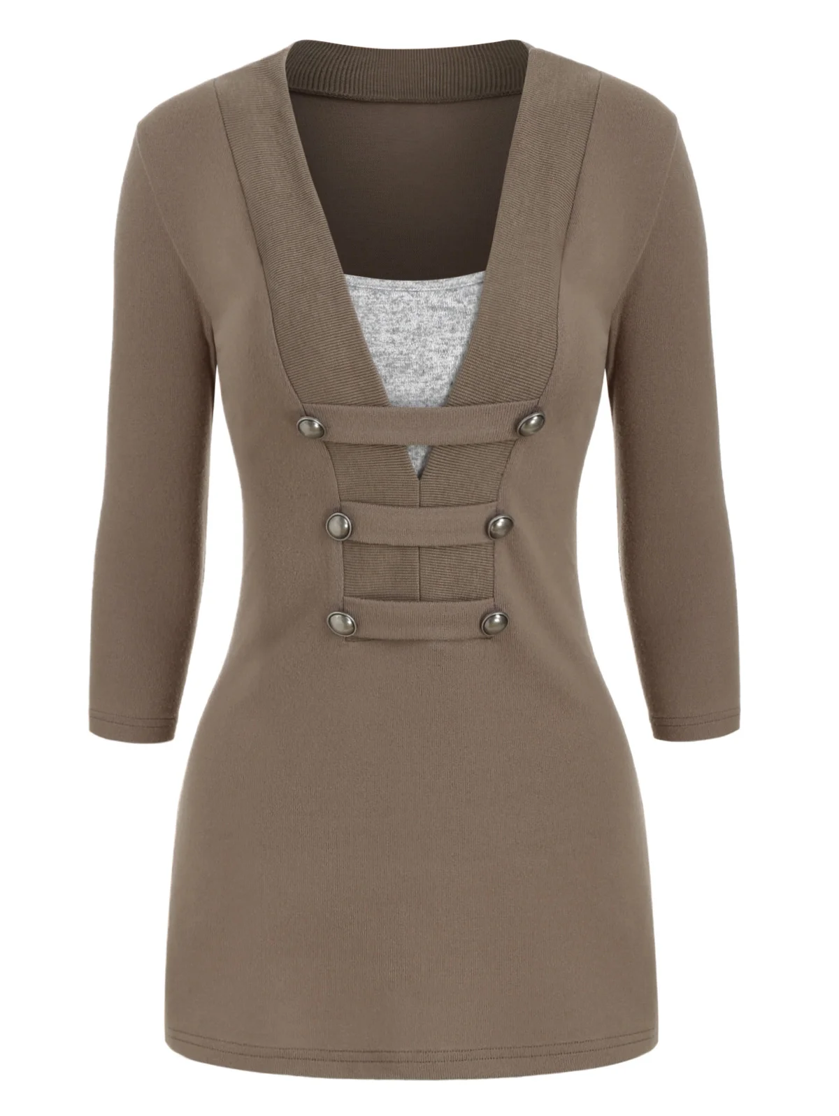 Подробная информация о продукте Тип Пуловеры Случаи жизни На каждый день Стиль Повседневное Подходит для Тип Обычный Длина Обычный Воротник-стойка С v-образным вырезом Рукав Длина Три четверти Материал Полиэстер, спандекс Эластичность Эластичный Рисунок В стиле пэчворк Украшение Кнопка Сезонов Лето, зима, осень Вес 0,3600 кг Посылка содержание 1 x трикотаж