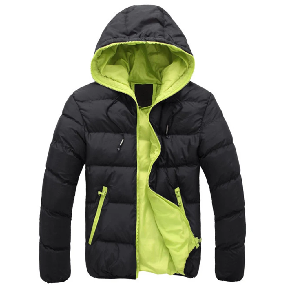 Осенне-зимнее мужское теплое хлопковое пальто на молнии с цветными блоками, повседневный пуховик с капюшоном