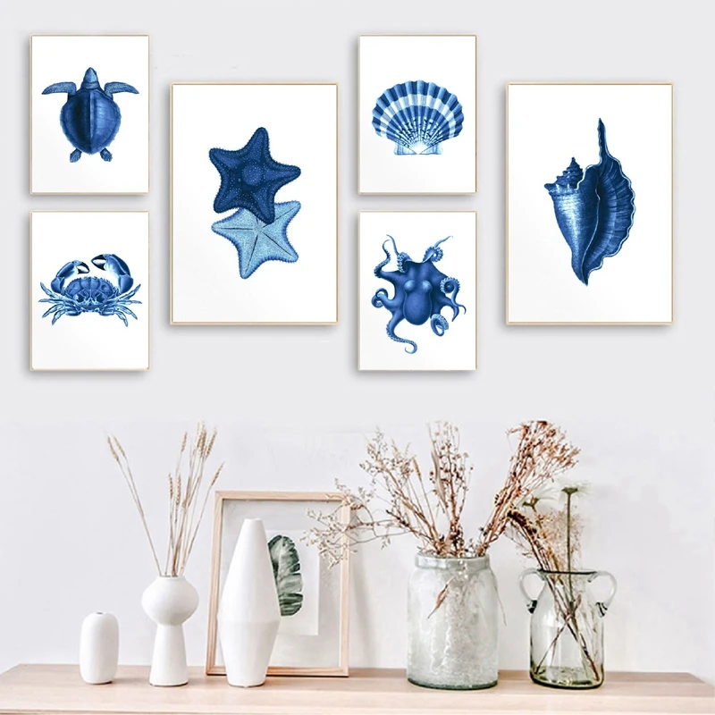 Голубые морские акварельные плакаты и принты, прибрежный декор, морская Морская звезда, Коралловая черепаха, иллюстрация, художественная живопись, картины, украшения==================================================