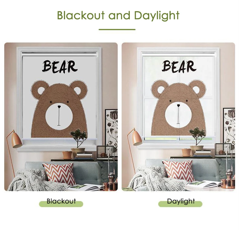 Модная детская комната с мультипликационным принтом, жалюзи, полузатемненные жалюзи и оттенки для детской спальни