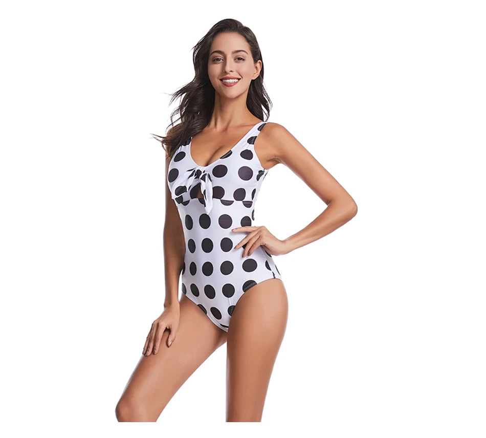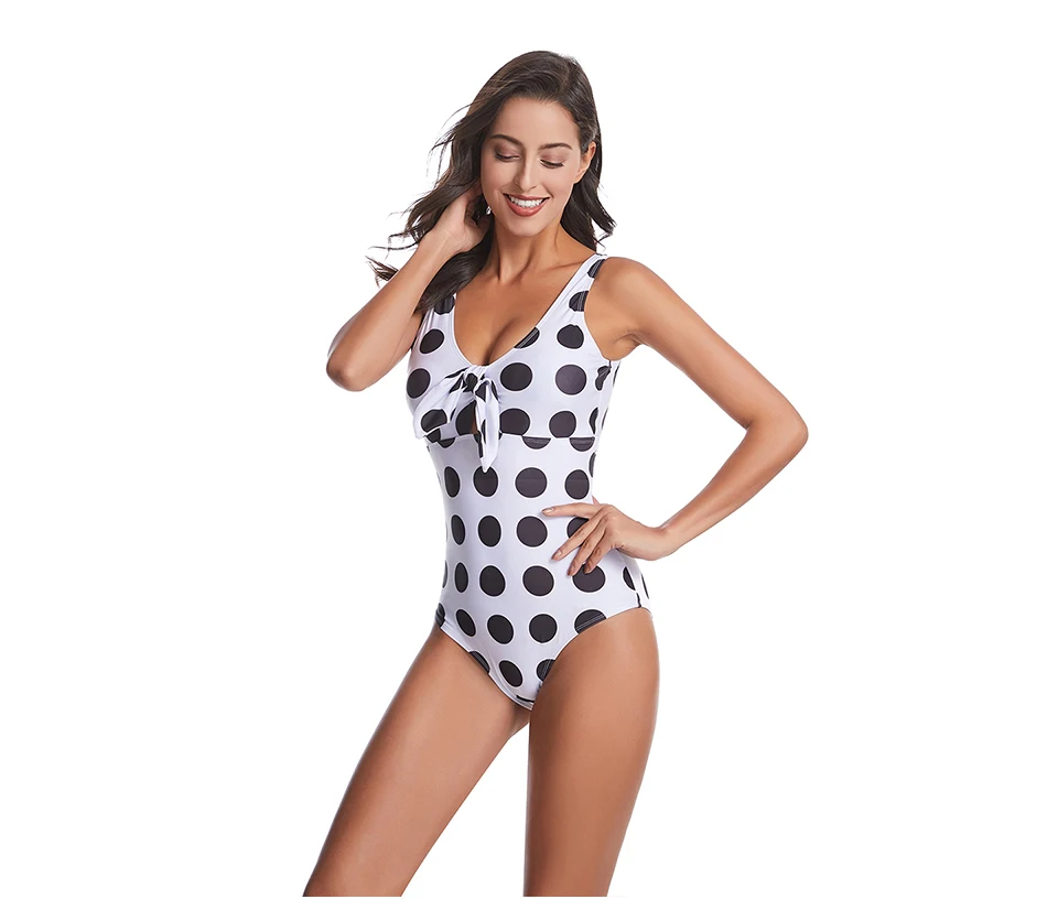 Женский Цельный купальник с узлом и бантом спереди 2020, цельный пуловер с круглым вырезом, купальный костюм для S-2XL и девочек, монокини в горошек