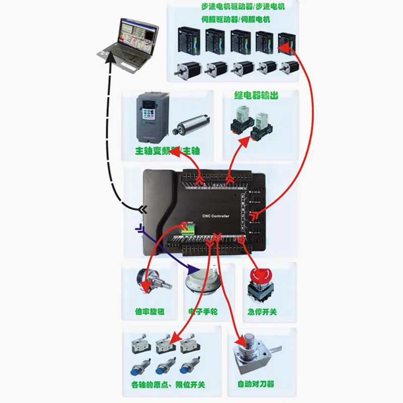 О: Вы должны внимательно ознакомиться с инструкцией по эксплуатации. В главах руководства описывается использование импульсного порта, входного порта и выходного порта, а также добавленные функции. Контрольная карта обычно питается от 24 В постоянного тока. Для получения более подробной информации, пожалуйста, обратитесь к описанию продукта вручную. Подключите USB к компьютеру и установите программное обеспечение Mach3. После того, как Сброс будет нормальным, вы можете управлять им. Как правило, линия управления направлением импульса может быть перемещена.