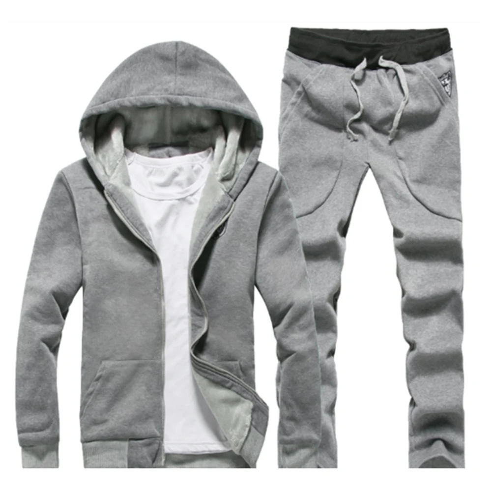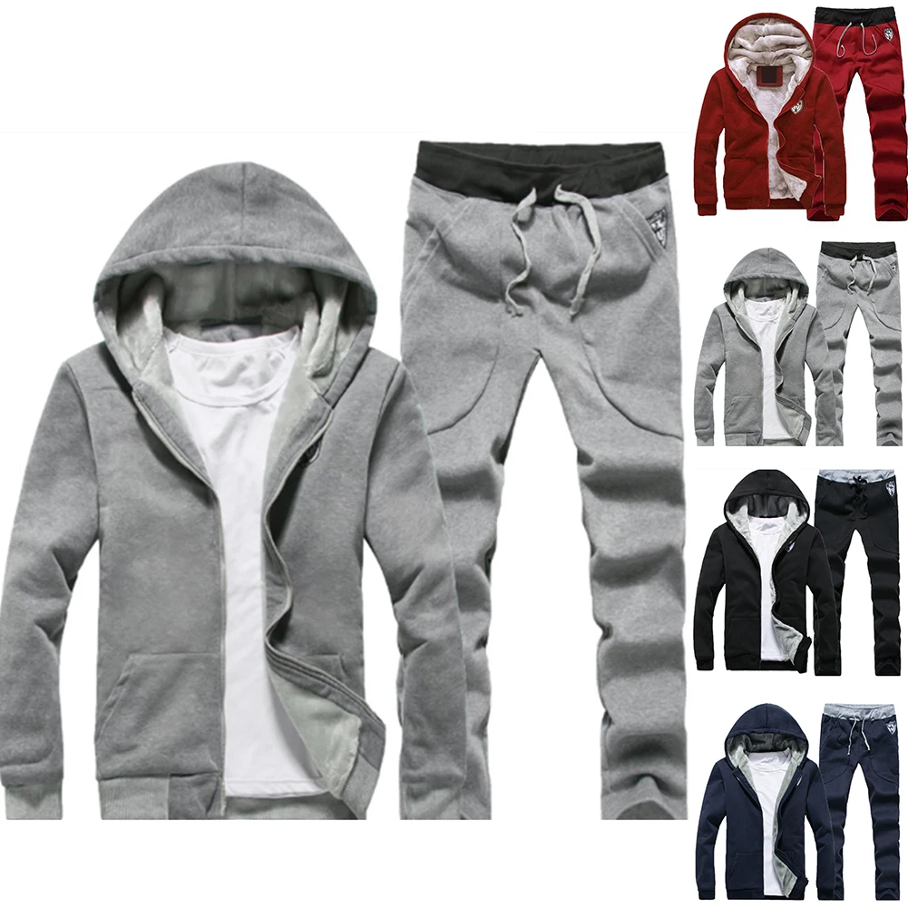 Мужской повседневный теплый спортивный костюм размера плюс, флисовое пальто на молнии с капюшоном и брюки на завязках