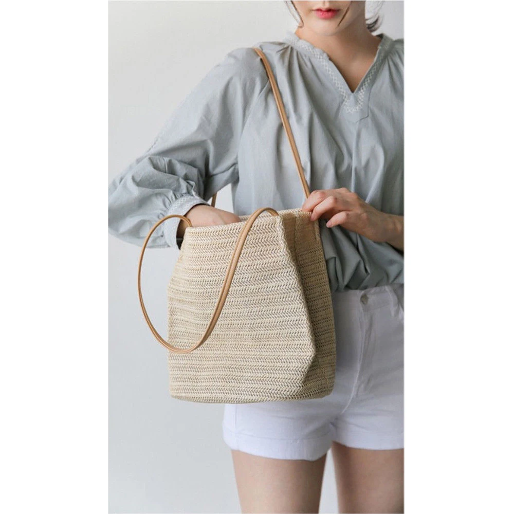 Quality is the first with best service. customers all are our friends. Fashion design,100cm Brand New,high quality! Material: Straw Color: Beige, Dark Beige Style: Handbag Feature: Leisure , Elegant Size: One Size : Approx. 23x24x17cm, Belt: 26cm There is 2-3cm difference according to manual measurement.