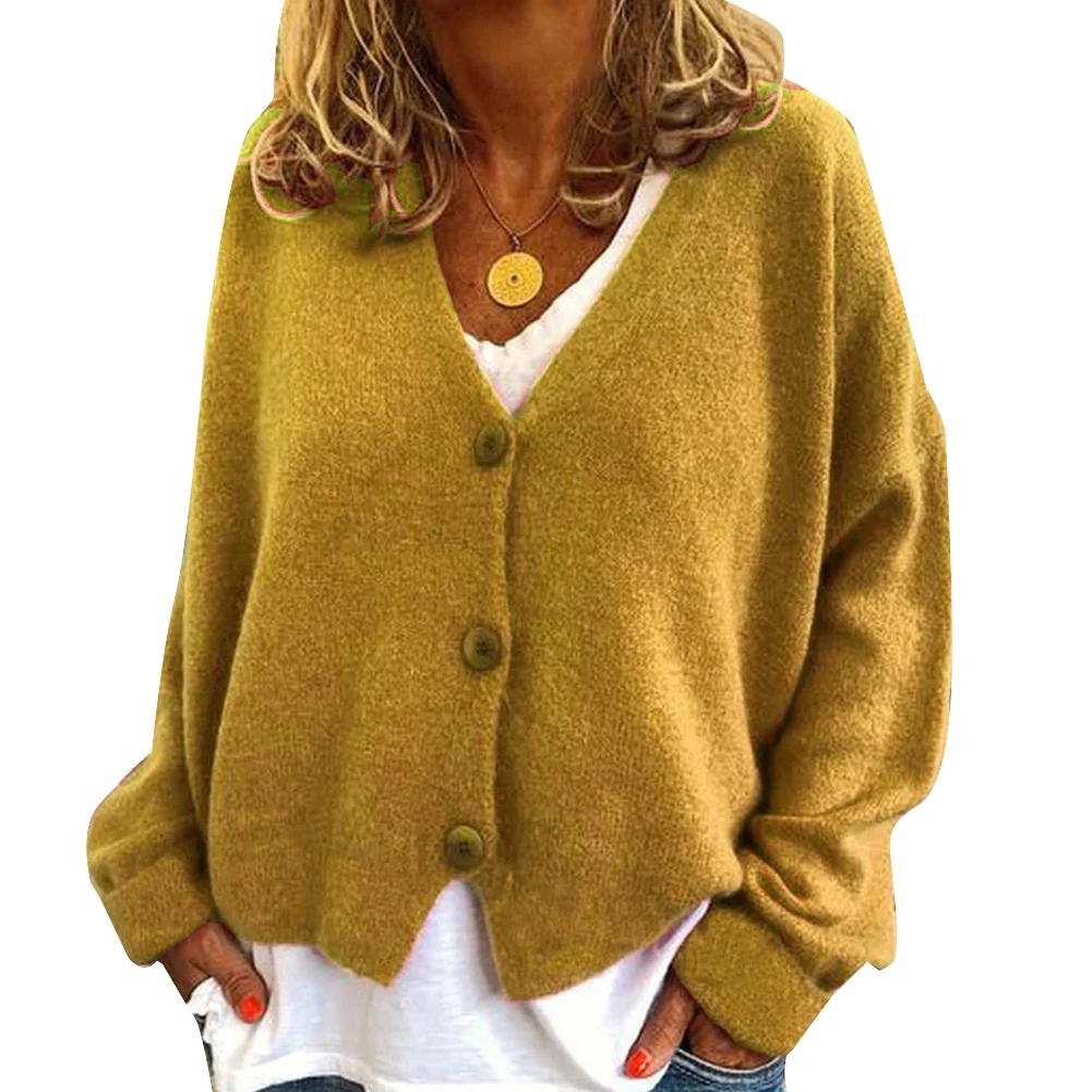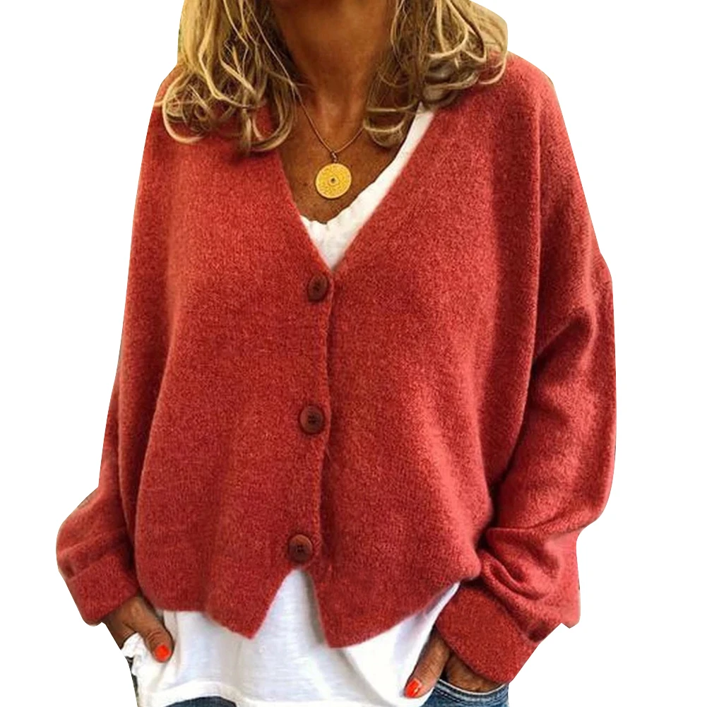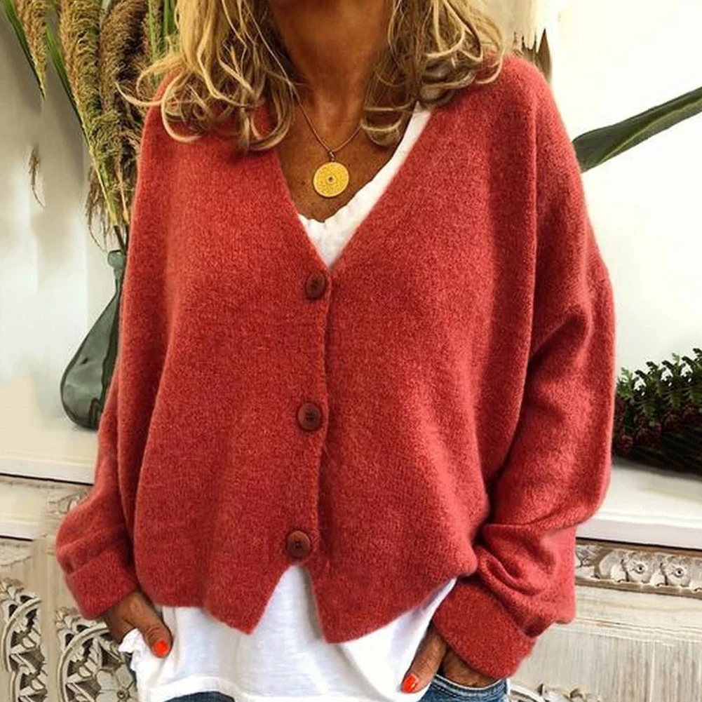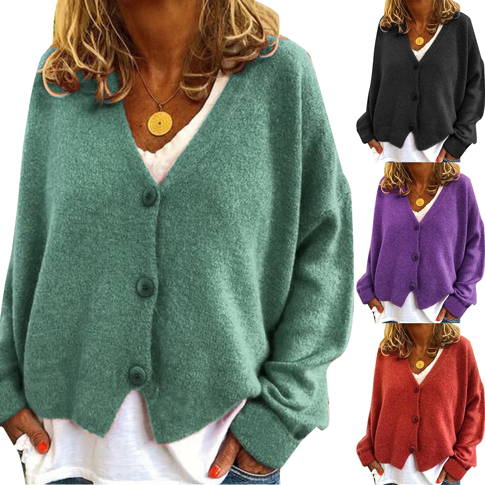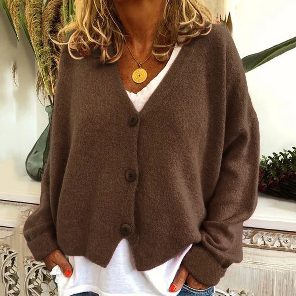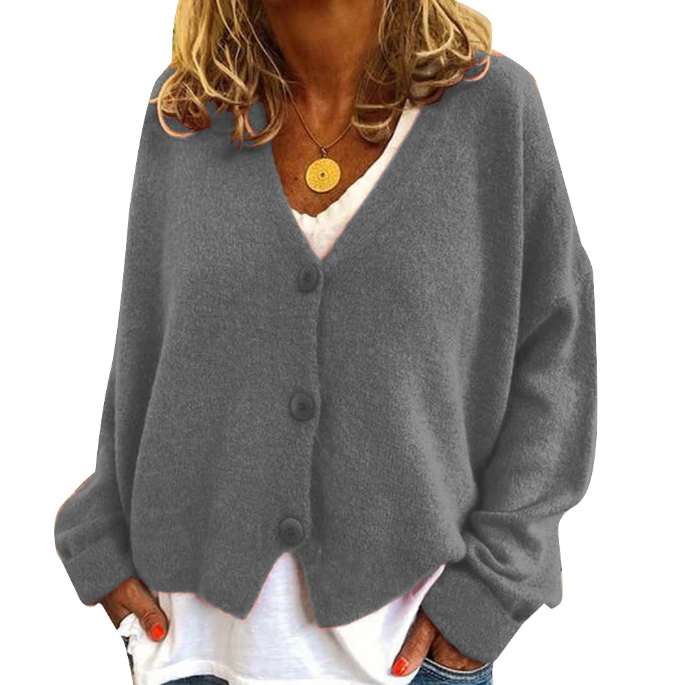 Женский короткий кардиган на пуговицах, модный однотонный Свободный кардиган с длинным рукавом, пальто размера плюс