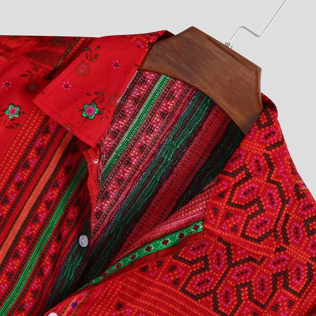 Мужские Винтажные повседневные свободные рубашки с отложным воротником и этническим принтом