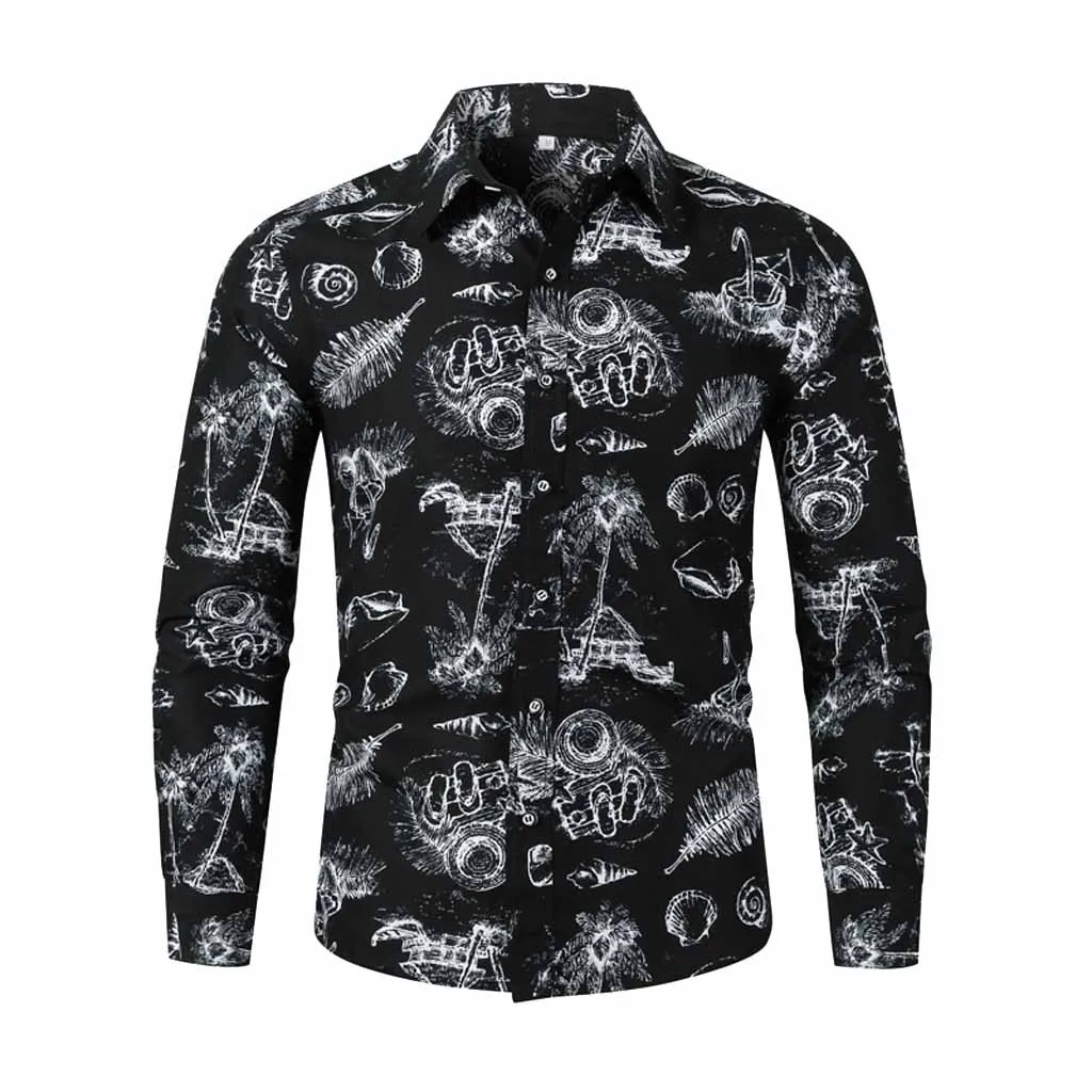 Мужская Осенняя Зимняя Повседневная тонкая рубашка с принтом и длинным рукавом, Пляжная блузка