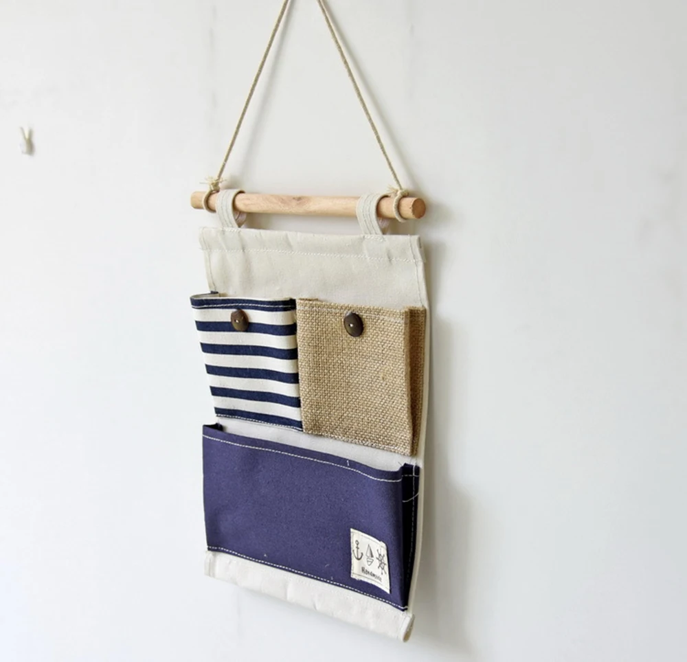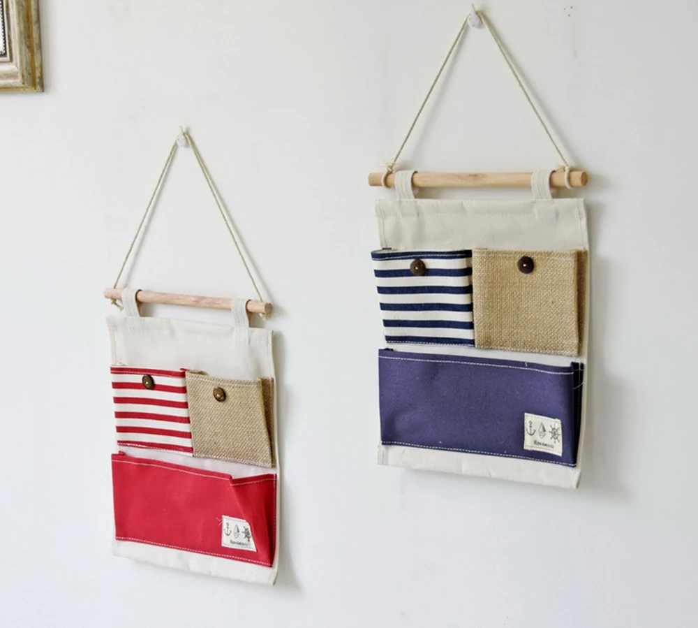 Полосатые комбинированные Висячие Сумки для хранения льняные тканевые Висячие карманы для хранения висячие карманы для хранения хлопок 3 кармана