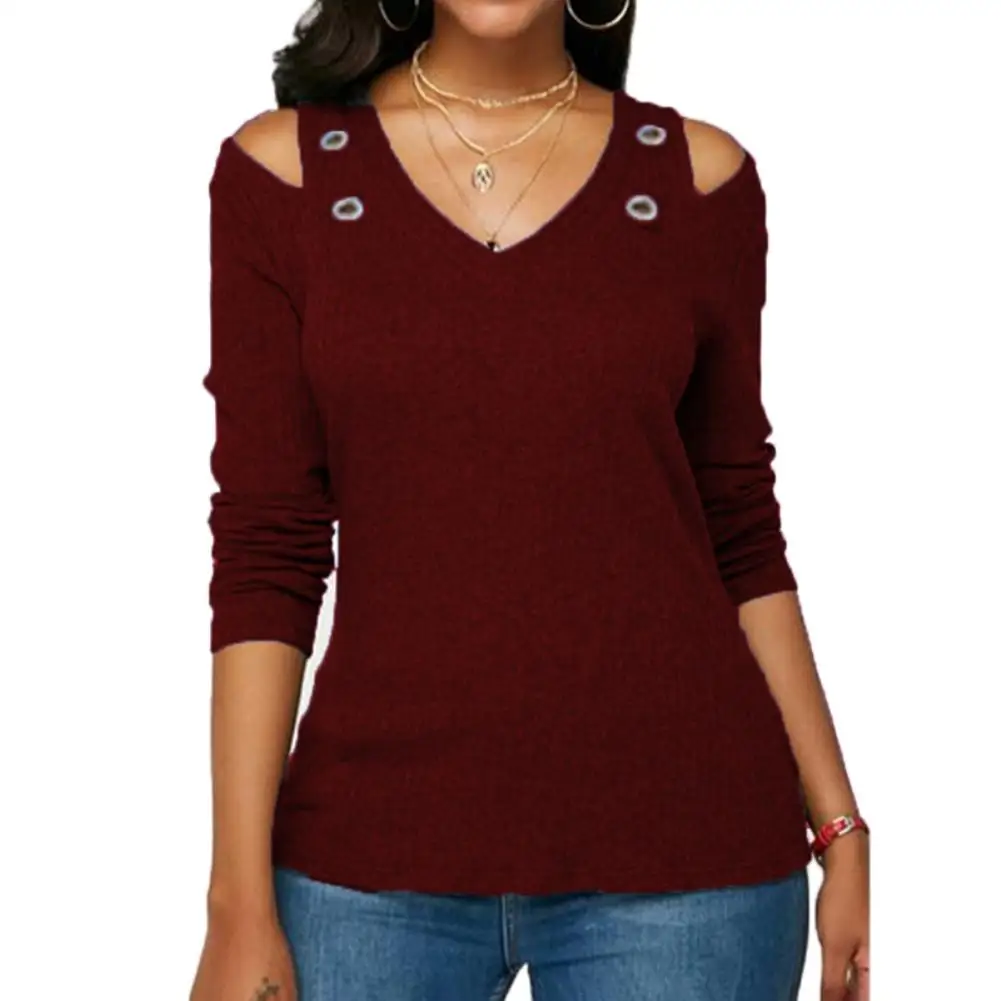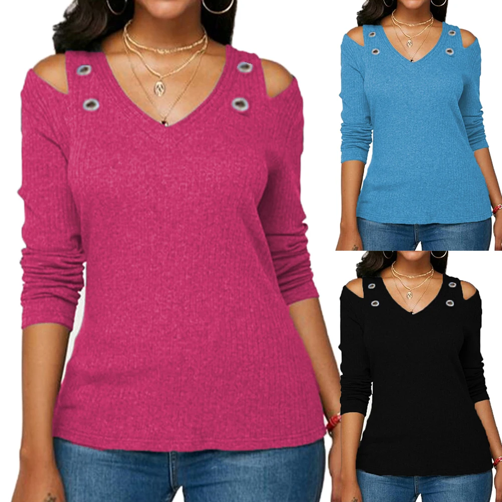 Повседневная Женская однотонная блузка с круглым вырезом и длинным рукавом с открытыми плечами размера плюс