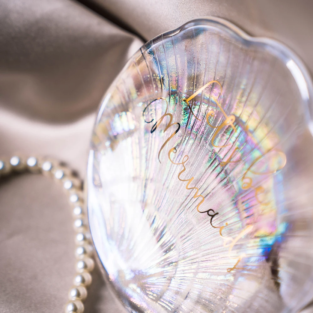 Оболочка Ювелирных Изделий Дисплей Органайзер Мини Стеклянная тарелка ювелирных изделий тарелка лоток для ключей домашний декор блюдо Свадьба День рождения Рождественский подарок для домашнего декора Материал: стекло Ремесло: ручная роспись Подходит для: конфет, орехов, ювелирных изделий, мелочей и т. д. Размеры: 13*12,5 см. Примечание: При ручном измерении возможна небольшая погрешность, пожалуйста, поймите Это очень красивая тарелка для украшений из стекла русалки, вы можете положить ювелирные изделия или закуски и т. д. Положите его в туалетный столик, в спальню, в ванную комнату или на кухню, идеальное место, чтобы держать ваши ожерелья, серьги, ручную цепочку, браслеты.