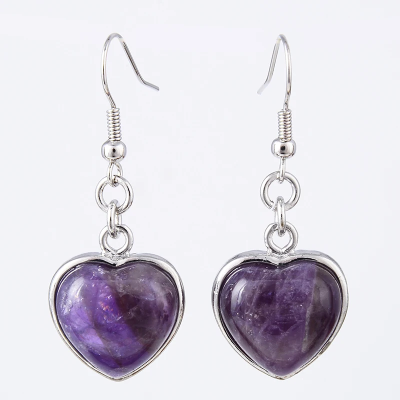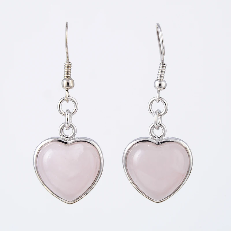 Простая Женская Девушка Любовь естественная форма сердца камень бисера крюк висячие серьги розовая кристальная Подвеска из лазурита серьги-подвески рейки ювелирные изделия