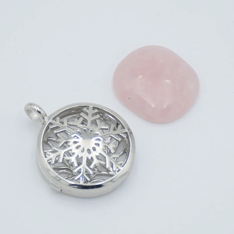 Круглый Снежный полый медальон в коробке, подвеска для ожерелья с натуральным камнем, бусы с тигриным глазом, белый кристалл, женские модные ювелирные изделия