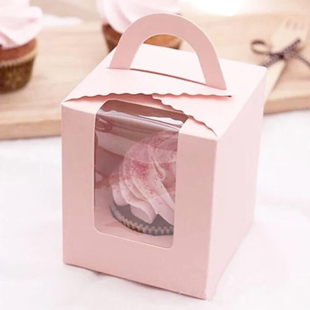 10 шт прозрачные оконные коробки для одного капкейка кексы контейнеры для выпечки с ручкой