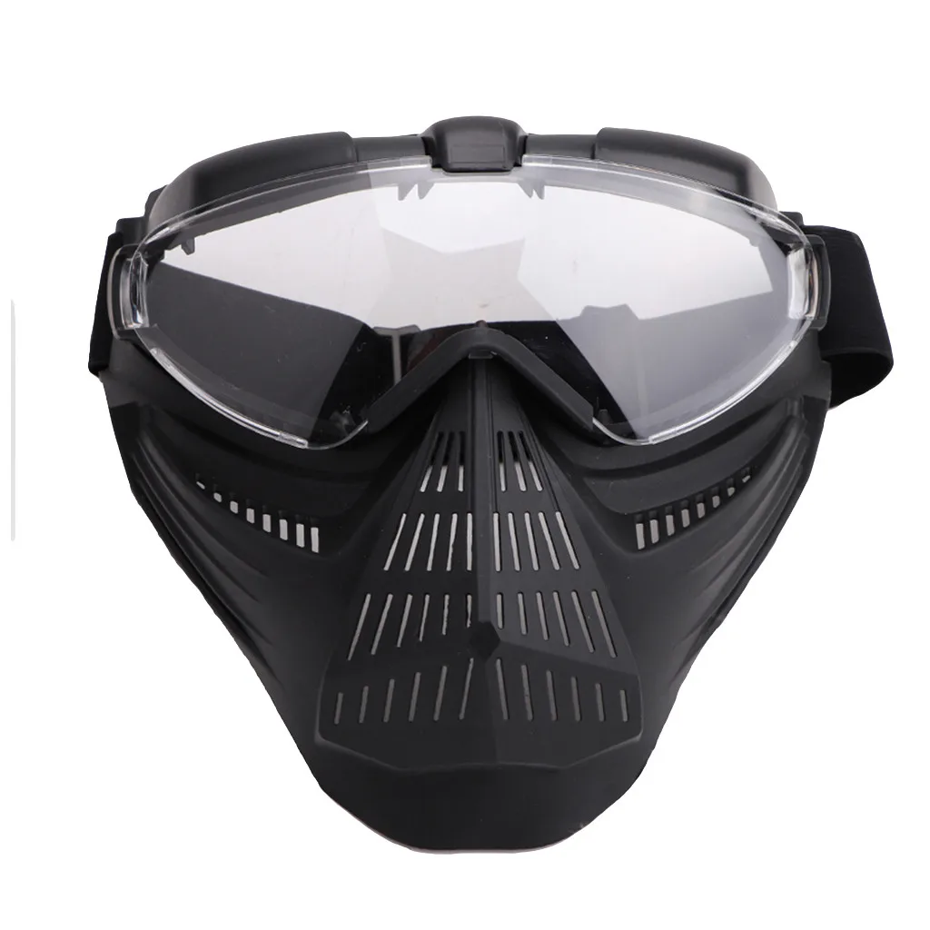 Прочная Лицевая панель Можно использовать как очки! Внутренняя поролоновая подкладка для лица Защита всего лица Высококачественный регулируемый ремешок Внутренняя поролоновая подкладка Размер: 22x20 см Материал: TPR Вес: 250 гУпаковка включает: