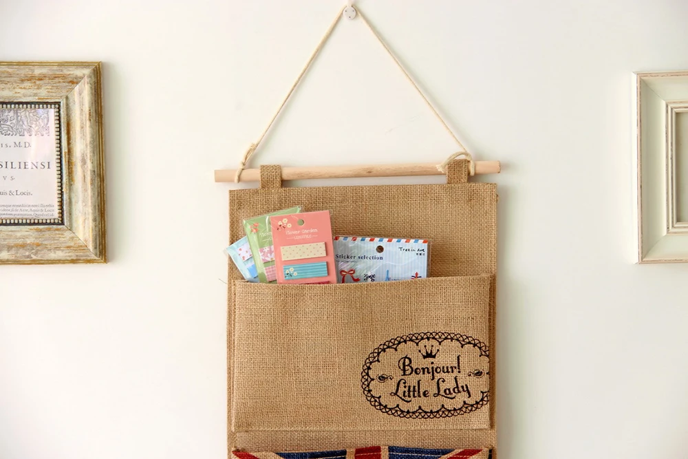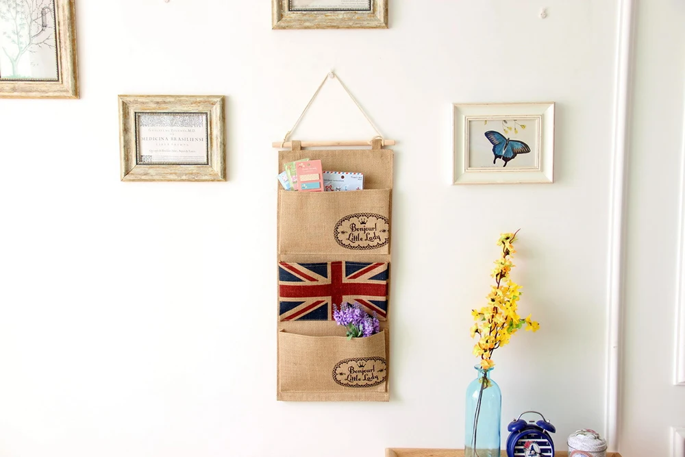 Стильная домашняя подвесная сумка для хранения влаги с британским, украшение для дома, настенный пакет подвесной на стену, джутовый журнил, подвесная сумка для спальни