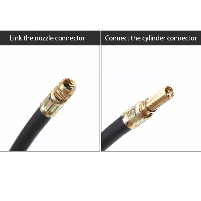 Заполненная газом удлинительная трубка изготовлена из меди, стального сплава и ПВХ, которые позволяют согнуть соединительную трубку. Он также имеет Удлинительное сопло из нержавеющей стали и сердечник клапана высокой плотности.