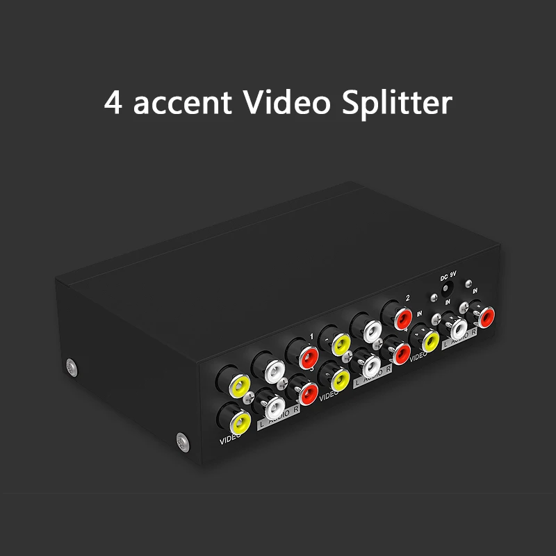 1PcsHigh Качество 4 порта 1x4 AV видео аудио RCA сплиттер с металлическим корпусом для 4 out для HDTV DVD с питанием adpater