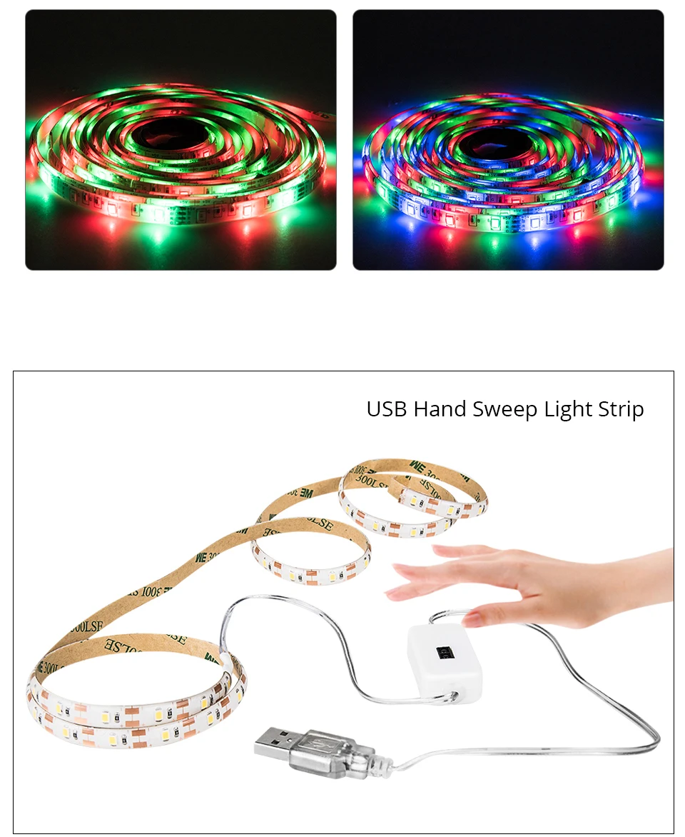 Ручная развертка Сенсор Светодиодные ленты светильник гибкий USB 5V Диодная лента стол ночной Светильник для ТВ Подсветка светильник шкаф Кабинет светильник s Кухня