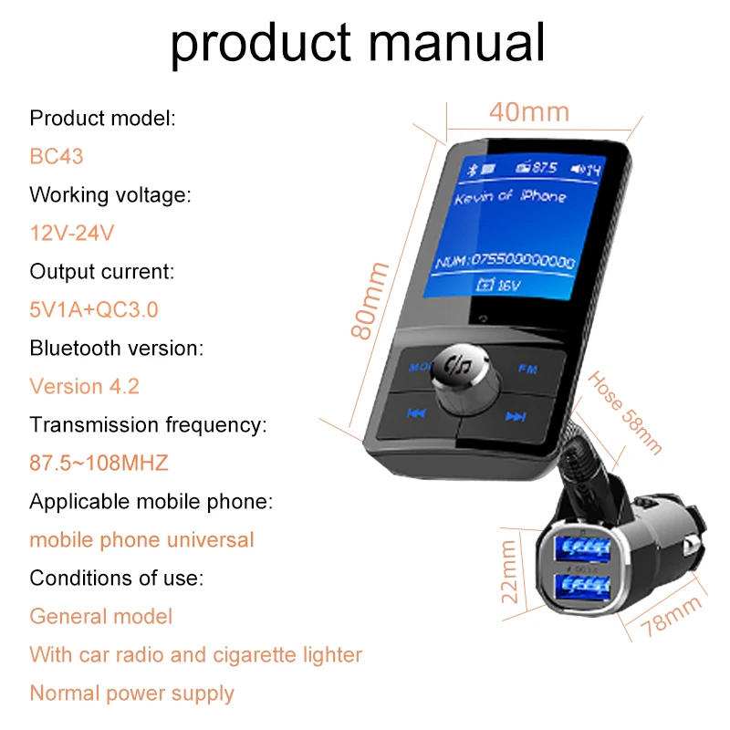 BC43 Автомобильный MP3 музыкальный плеер QC3.0 Быстрая зарядка навигация Bluetooth игровой автомобильный динамик