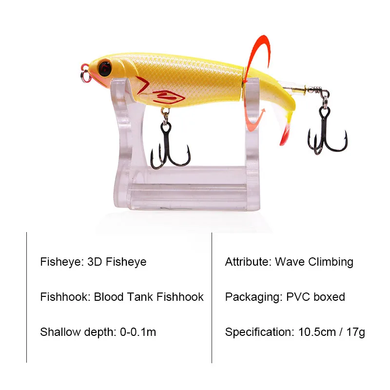 Категория: Lua приманка имитация приманки Тип крючка: три книги Применение: Морская рыбалка Особенности: 3D типа «рыбий глаз» Спецификация: 10,5 см/17 г Неглубокая Глубина: 0-0,1 м