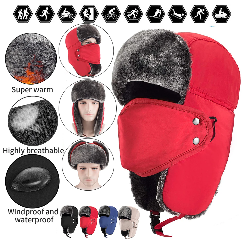 Зимняя шапка-бомбер, головные уборы для мужчин и женщин, утолщенная Балаклава, хлопковая Меховая зимняя шапка с ушками, сохраняющая тепло, шапки, маска, шапка-бомбер