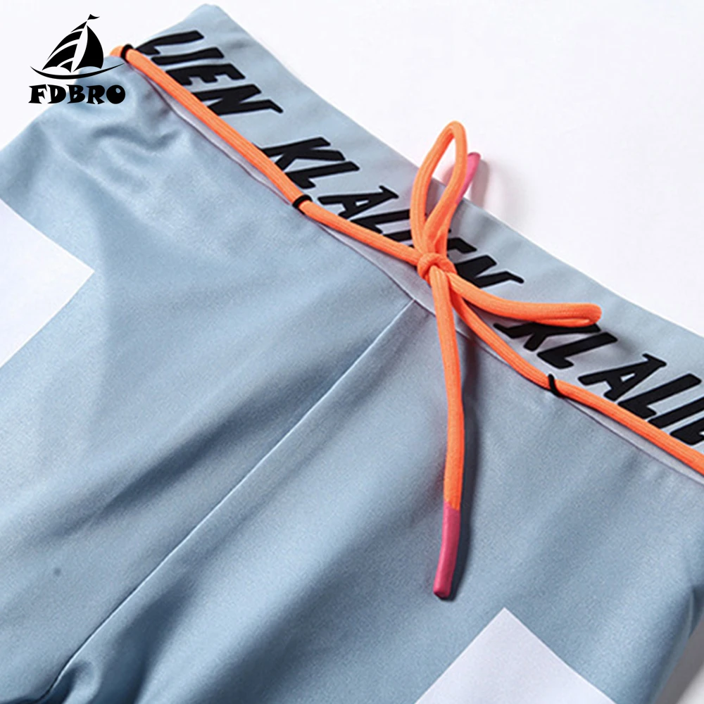 FDBRO эластичный спортивный костюм с буквенным принтом, Женский комплект из 2 предметов, облегающий укороченный топ с длинными рукавами, облегающие леггинсы, спортивная одежда
