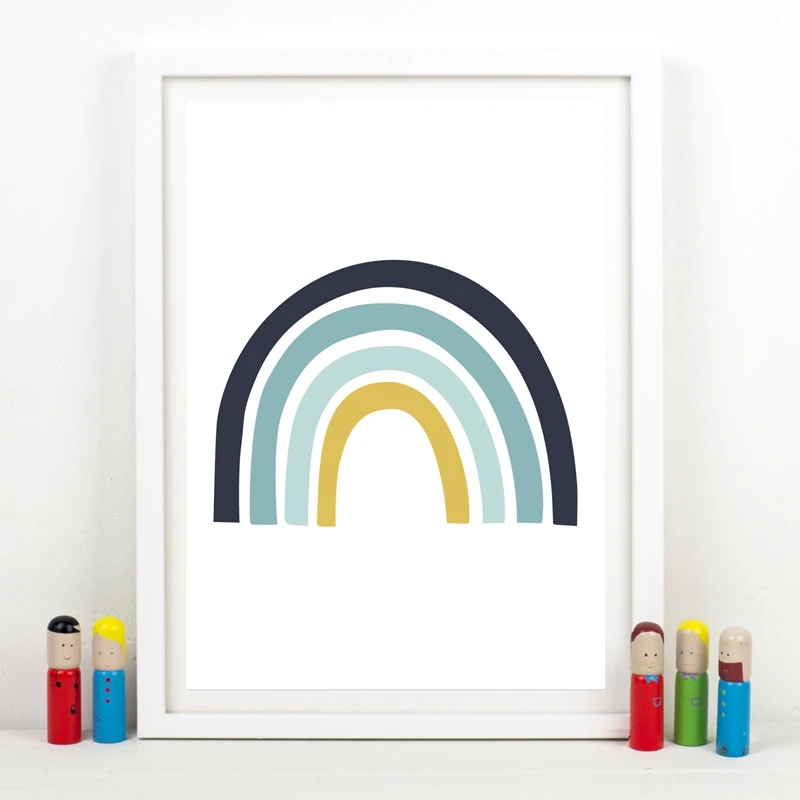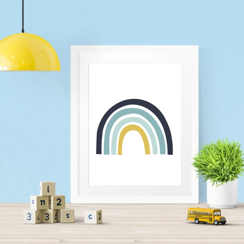 Радужный синий холст, художественный плакат, принты для маленьких мальчиков, детский Декор, скандинавский плакат, Настенная картина, картина, декор Детская комната для мальчиков