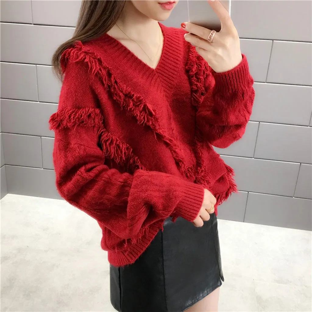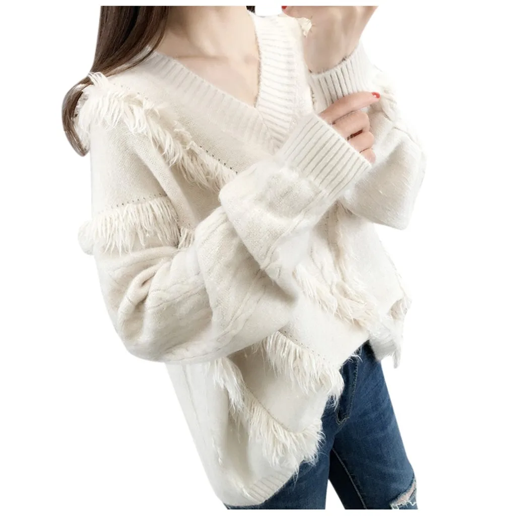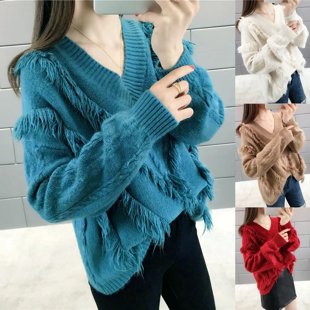 Женский Повседневный свободный свитер с длинным рукавом и v-образным вырезом, джемпер, пуловер, топы