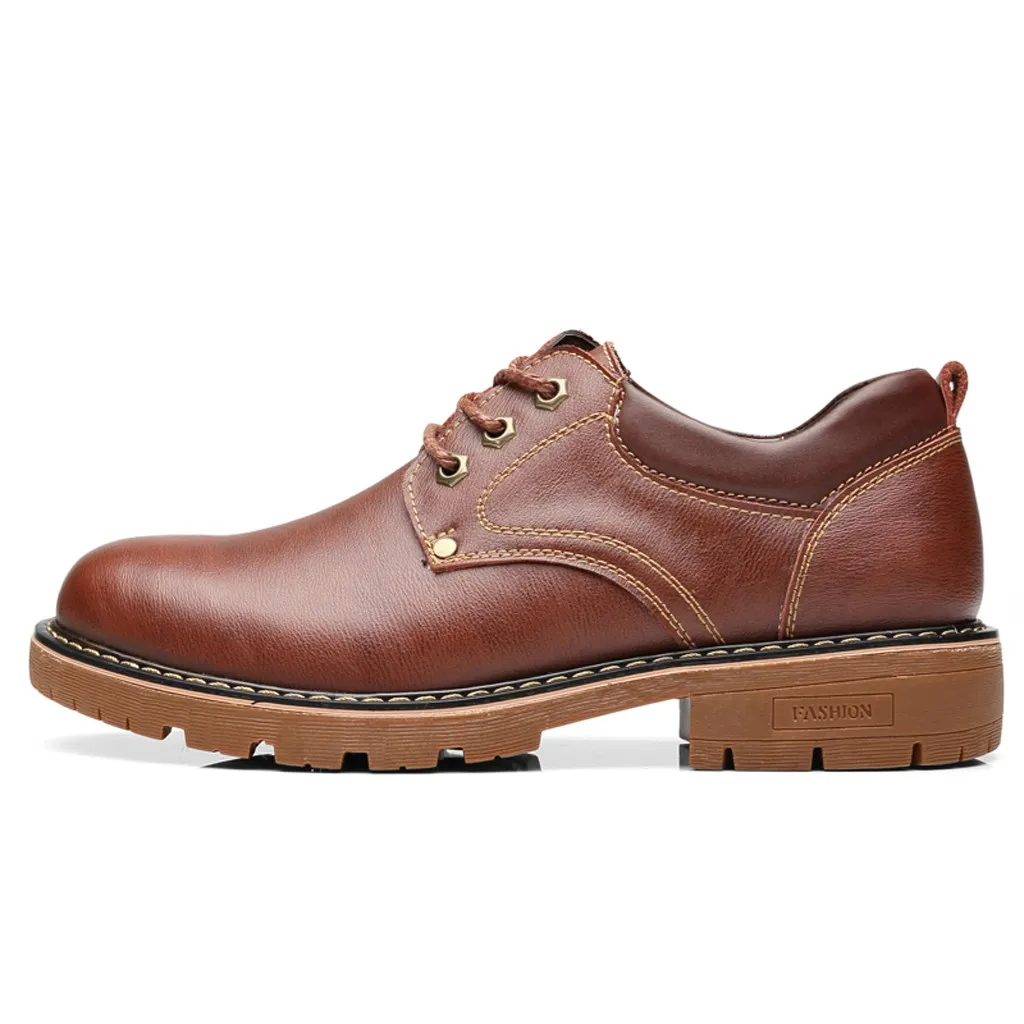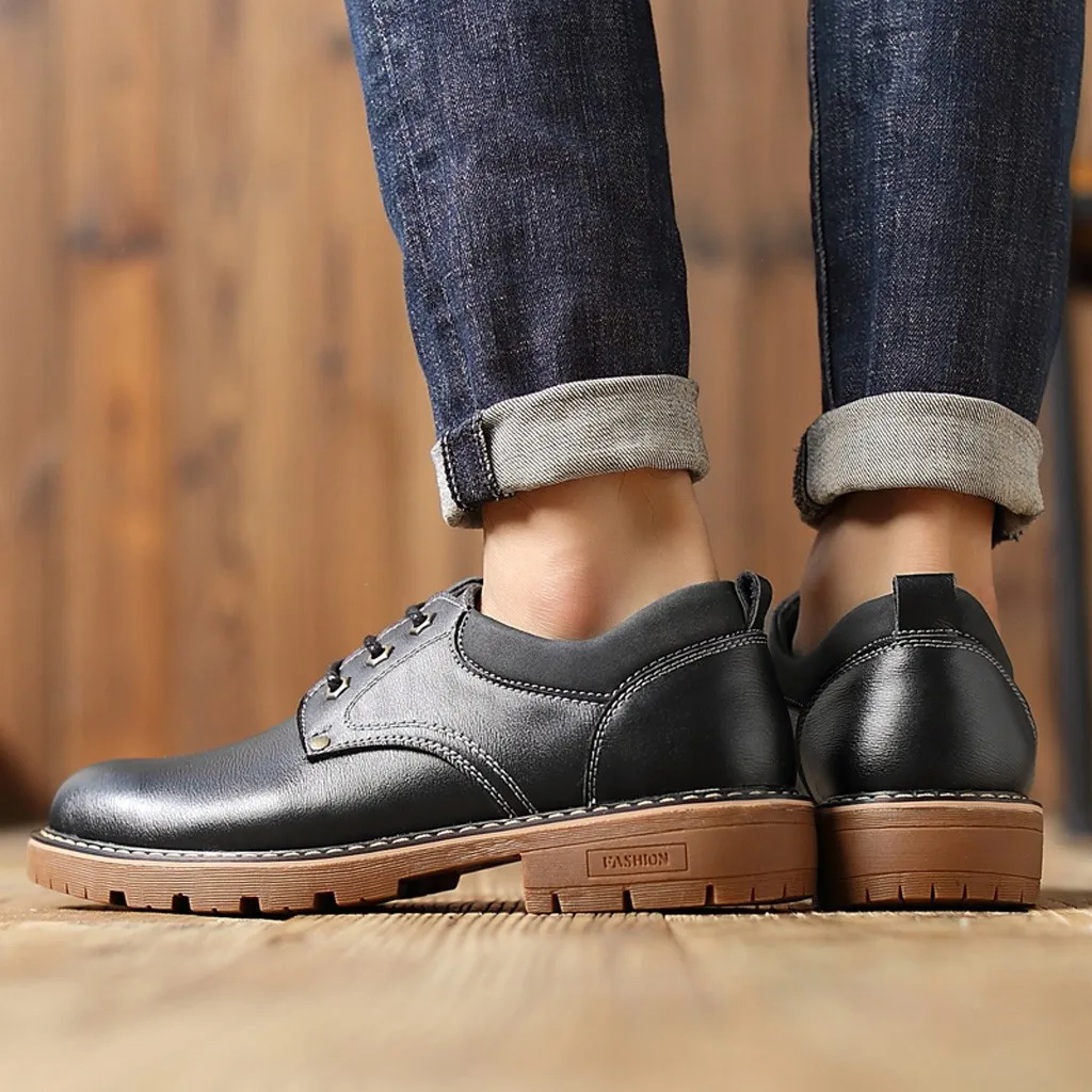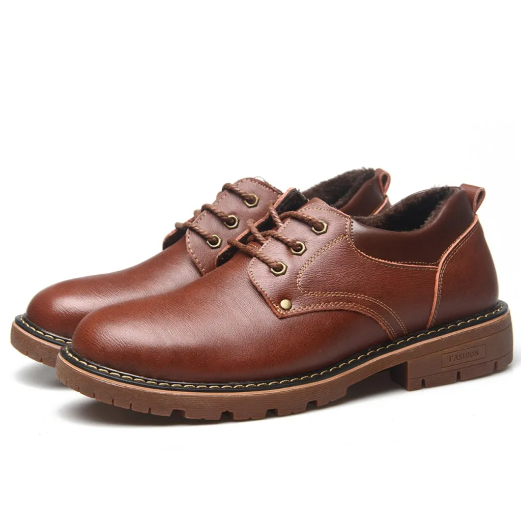 Мужская теплая обувь для отдыха; ботинки на шнуровке с круглым носком; обувь в деловом стиле; кожаная обувь