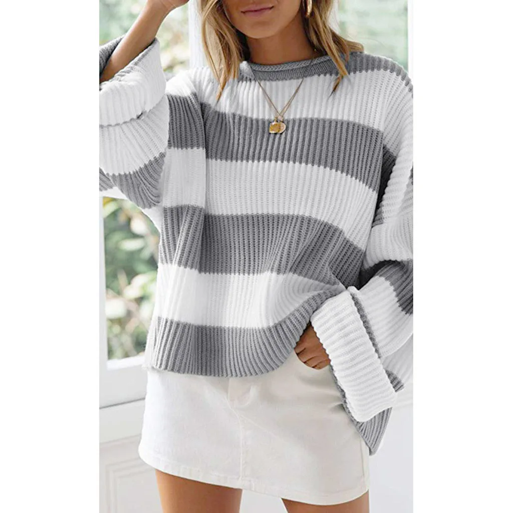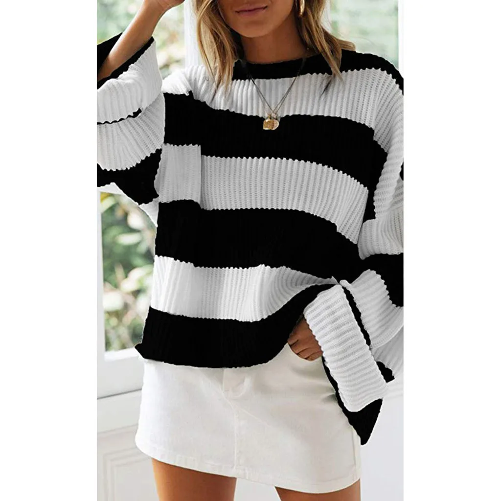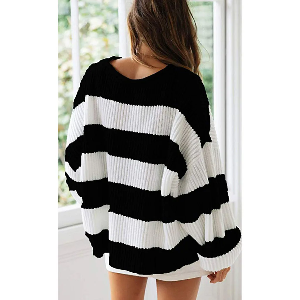 Женский свитер с открытыми плечами, повседневный трикотажный Свободный пуловер с длинными рукавами