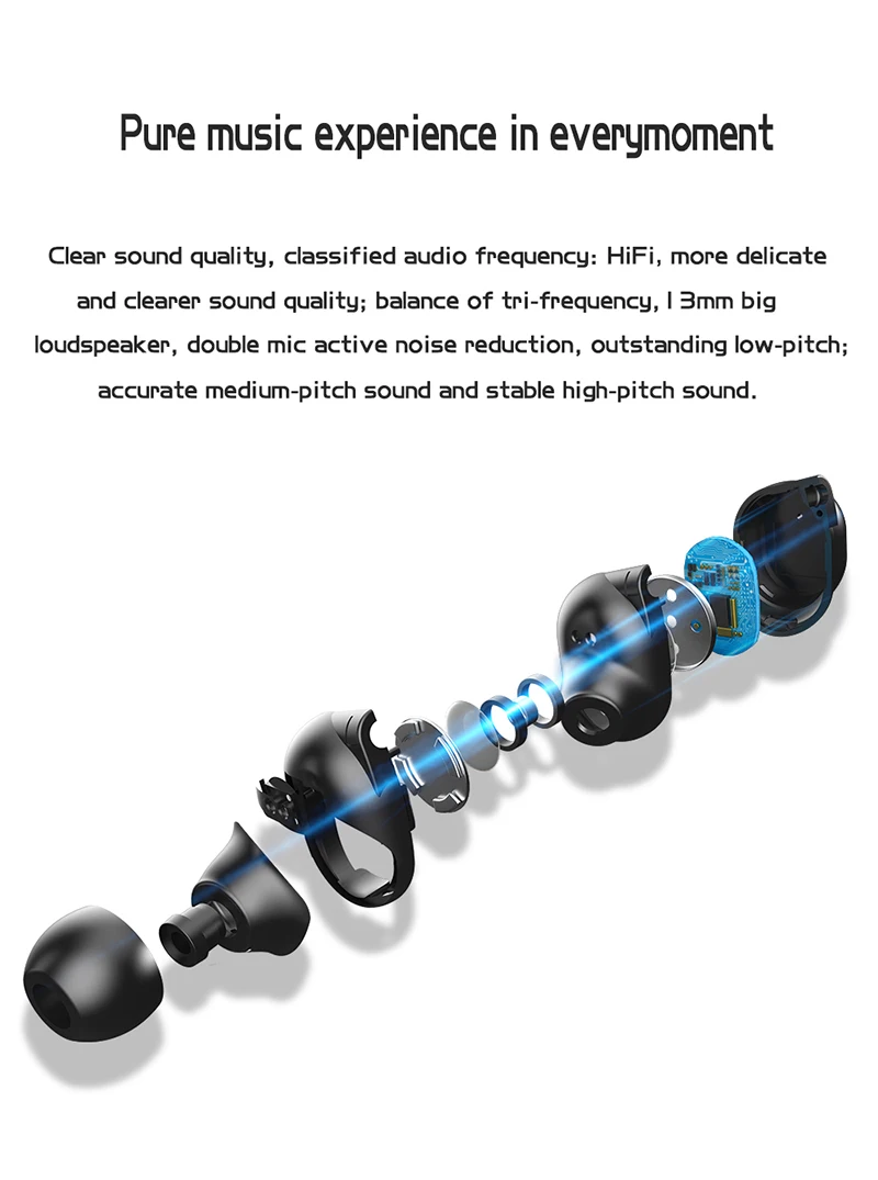 3. Конфигурация: гарнитура + кабель для зарядки android + 2 колпачка для ушей + китайское руководство + руководство на английском языке + цветная упаковка