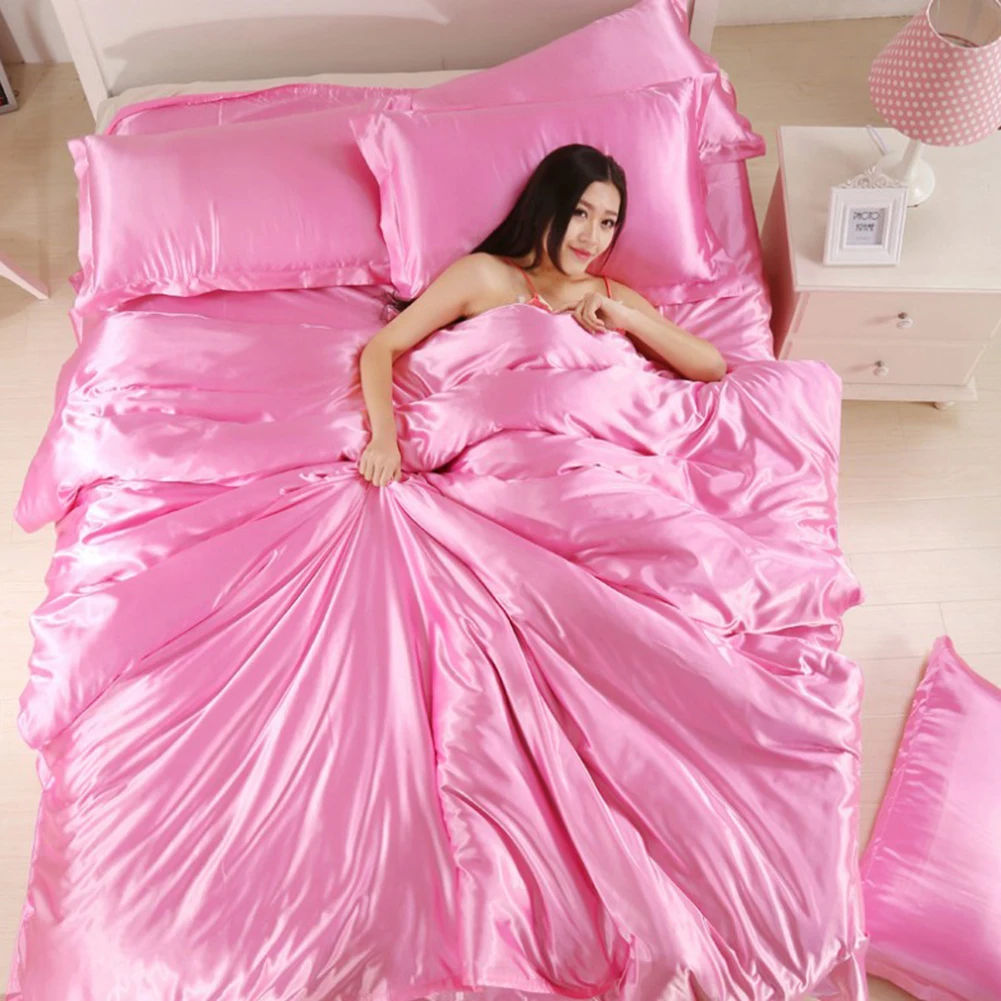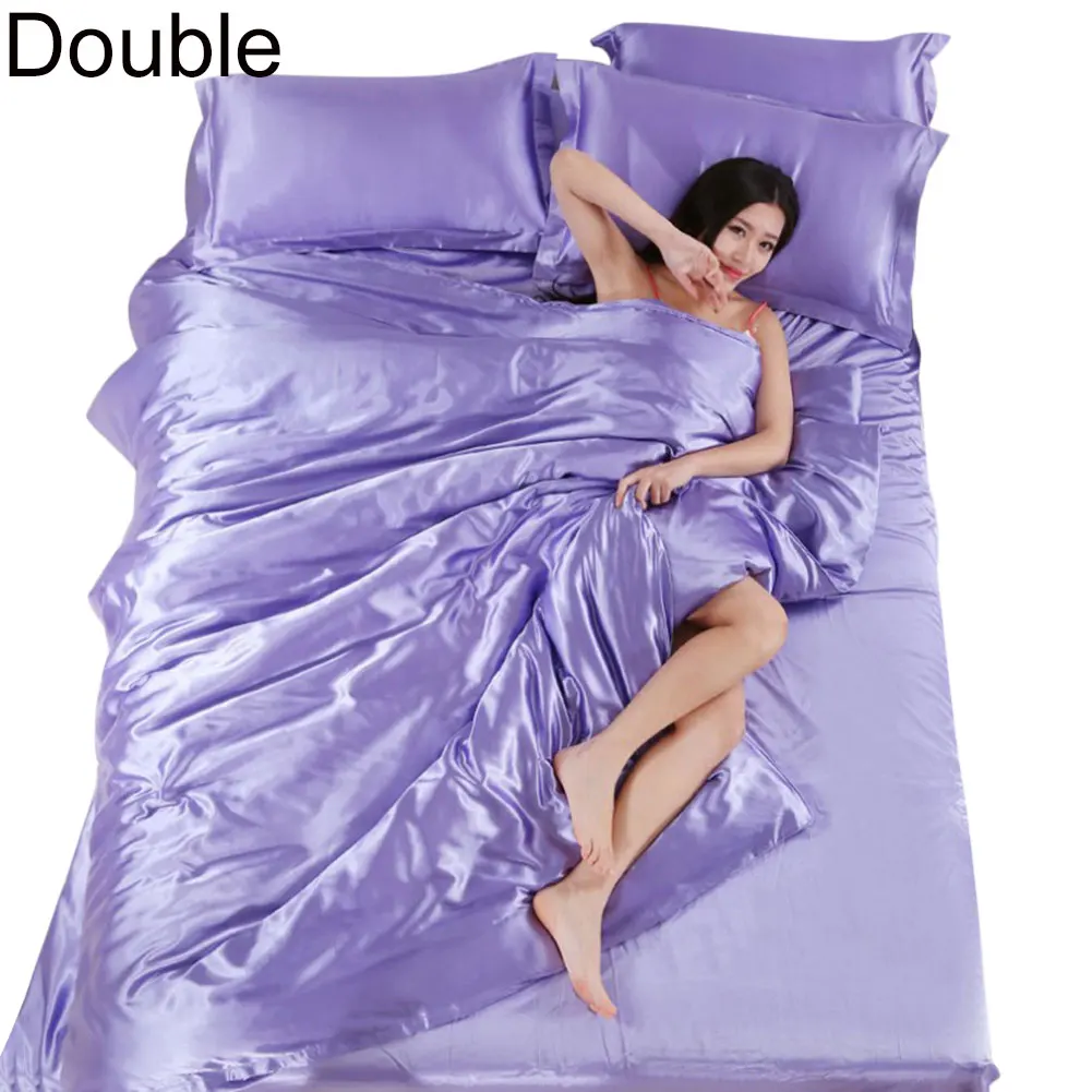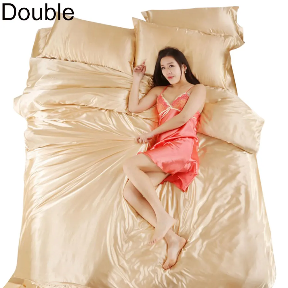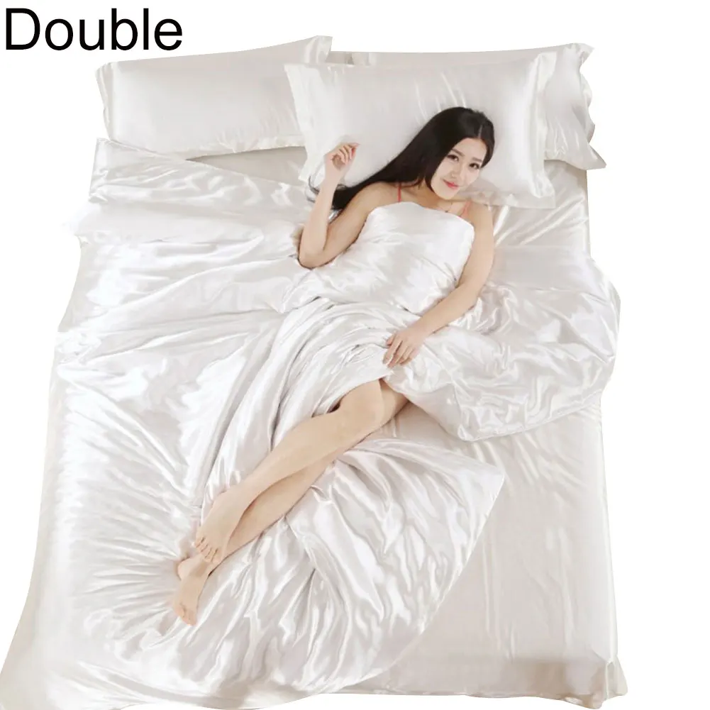 3/4 шт. Сатиновое мягкое одеяло пододеяльник наволочки Простыня Постельное белье Комплект постельного белья