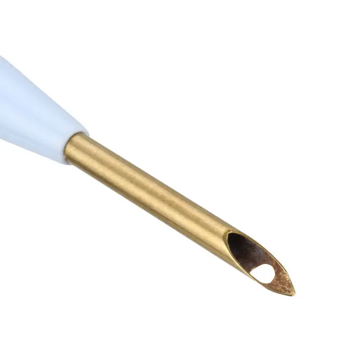 Ручка для вышивки состоит из Пластиковой ручки и латунной головки, латунный материал гладкий, что может уменьшить трение между иглой и тканью при шитье, сделать вашу вышивку более удобной.