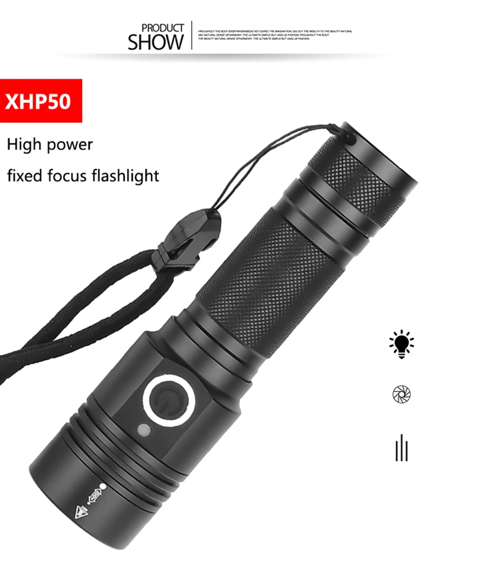 -Мощный светодиодный фонарик использует лампу XHP-50/XHP70.2 для максимальной выходной мощности до 30000/50000 люменов.