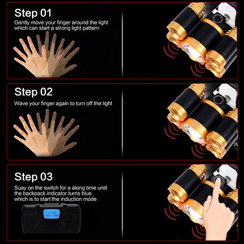 Особенности: -Внутренняя проводка применяет высокоэффективный усилитель цепи, рабочее напряжение широкое и может использовать батареи в большой степени -Один кнопочный переключатель, с 4 регулируемыми режимами -Светодиодная индикация зарядного адаптера для включения/зарядки/полной зарядки -Идеальный налобный фонарь подходит для активного отдыха, например, кемпинга, Путешествий, Походов и т. д. -С регулируемой базой для удобного использования -Питание: 1 или 2 аккумулятора 18650 -Переключатель датчика Wit Перезаряжаемый налобный фонарь:Количество светодиодов: