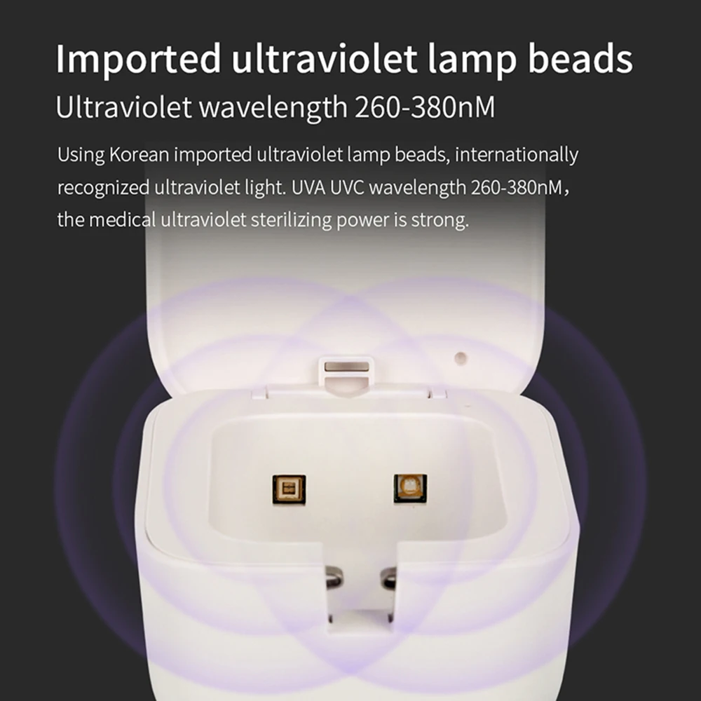 Дезинфектор зубной щетки оснащен сенсорным переключателем, который может автоматически работать, когда крышка закрыта.