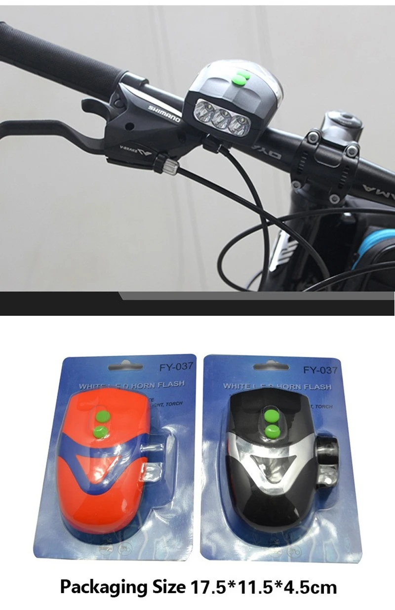 Товар: велосипедная супер яркая фара с рожком Материал: инженерный пластик Бусины лампы: 3 супер яркие светодиодные лампы Цвет: черный, оранжевый Вес: около 39 г Размер: прибл. 11*6,6*4 см Характеристики: 80 дБ супер громкий Рог Водонепроницаемый и ударопрочный супер яркий мульти-режим