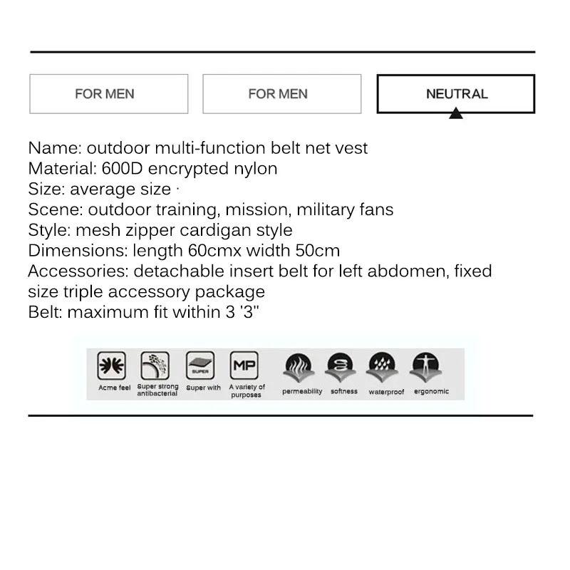 Изготовлен из прочного, удобного полиэфира высокой плотности 600D, больших прочных молний и сетки. Тактический жилет является жестким и отлично подходит для игр CS, страйкбола, пейнтбола, боевых действий и сражений.