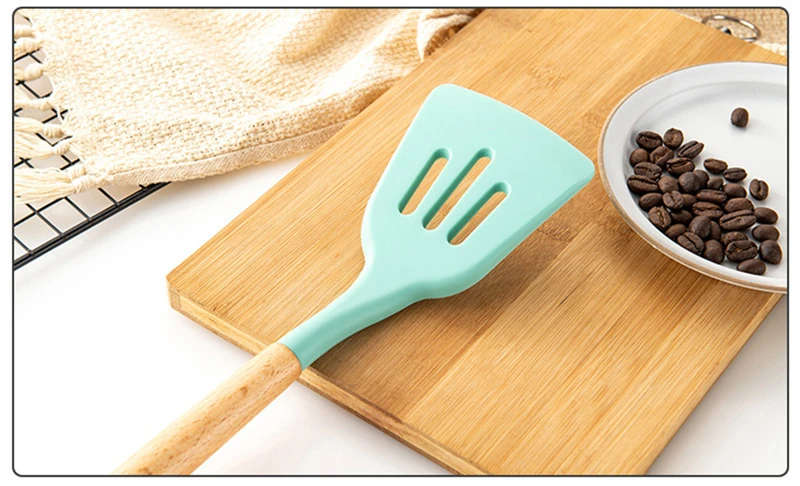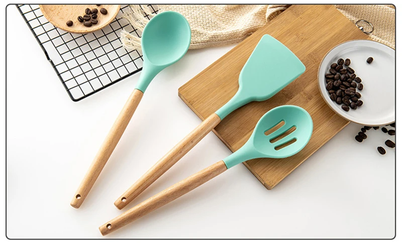Покрывает все кухонные принадлежности: Этот набор кухонной посуды покрывает все ваши потребности на кухне от смешивания в миске до нарезки овощей для приготовления пищи. Набор кухонных принадлежностей включает в себя лопатку, сервировочную ложку, ложку для спагетти, глубокий ковш, щелочную ложку и держатель посуды из нержавеющей стали. Пищевая силиконовая головка: мы используем для пищевых продуктов класса премиум силикон с высокой термостойкостью, FDA и SGS одобрены, края этих кухонных принадлежностей безопасны и продлевают срок службы для ваших дорогих сковородок, кастрюль, посуда без царапин. 100% Премиум деревянный HANDEL: светильник, долговечные и прочные деревянные ручки кухонной посуды обеспечивают защиту от ржавчины и разморозки, а отличная теплоизоляция защитит вас от ошпаривания. Легко чистить и хранить: набор посуды с держателем Посуды Из Нержавеющей Стали Сохраняет кухонные принадлежности аккуратно хранимыми и организованными. Этот набор кухонных принадлежностей является антипригарным, легко моется и можно мыть в посудомоечной машине, что сэкономит ваше время и улучшит эффективность работы.